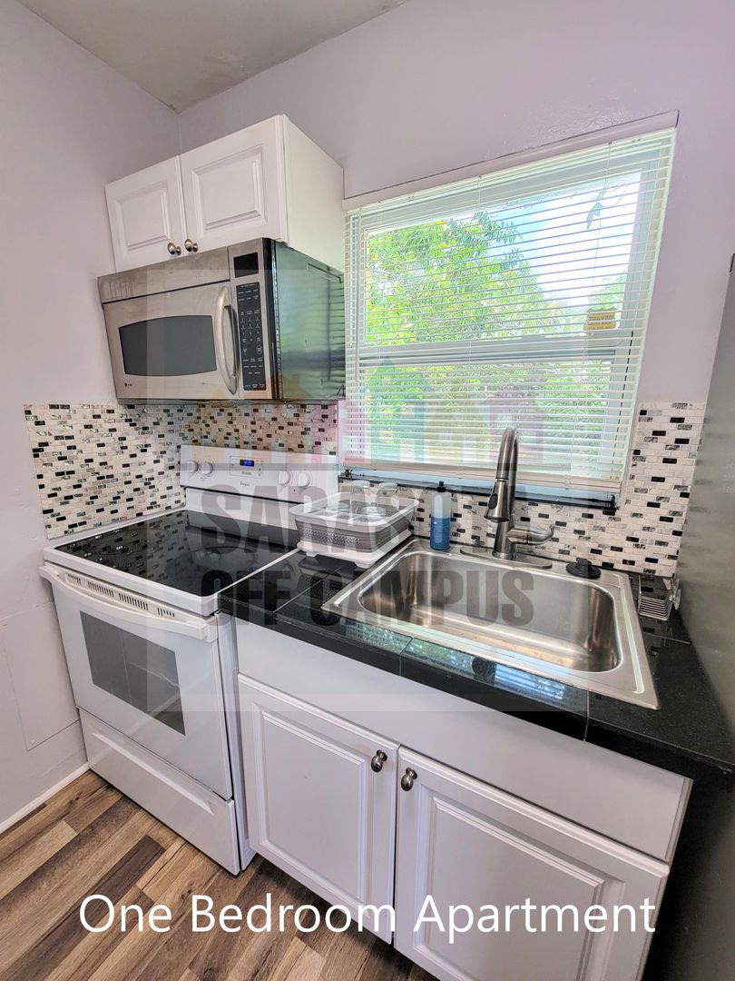 Newly renovated 1bd/1bth apartment. Granite counters, glass backsplash, stainless appliances, modern bathroom with marble shower, 40 in HDTV, very private property.