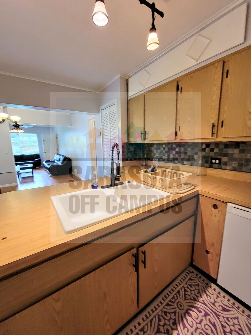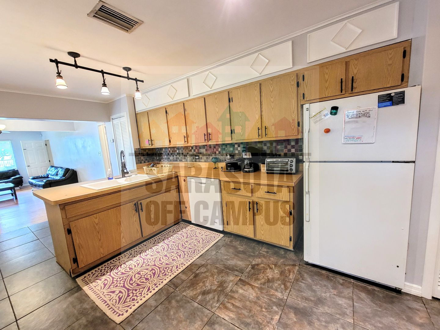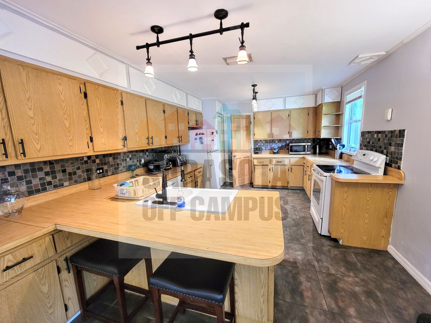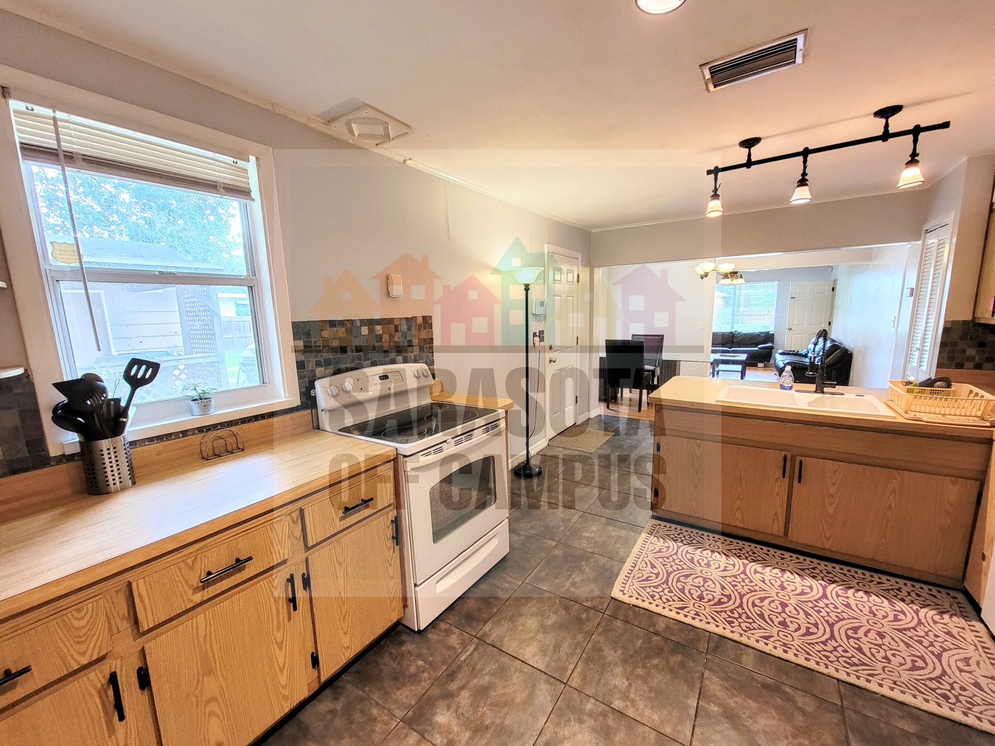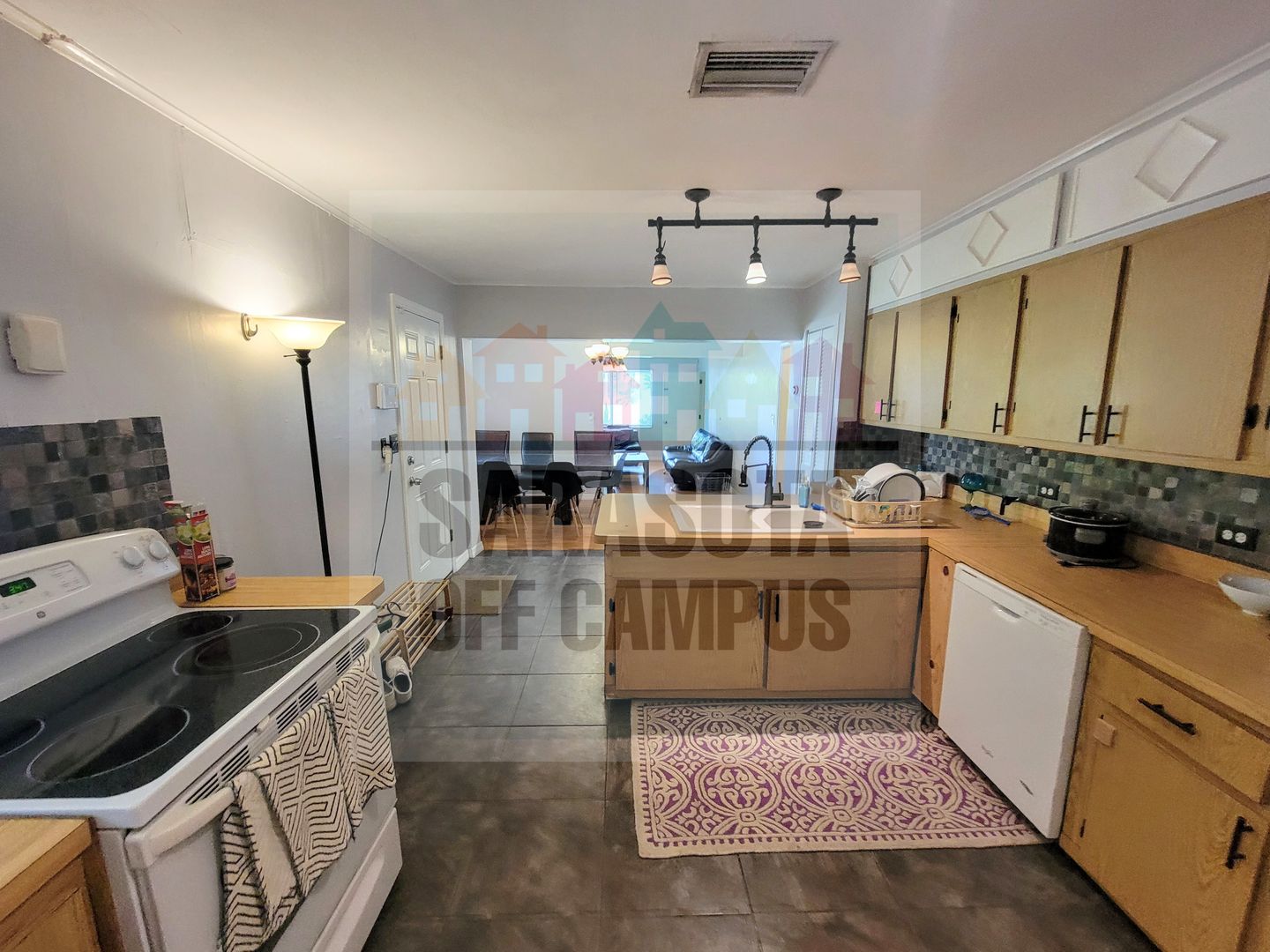 Stretch out in the copious common space in this Four Bedroom One Bath home. An extra large kitchen for those who enjoy cooking opens into a dining room and living room complete with dinner table, entertainment center and leather couches. The outdoor space features a fire pit in a fenced back yard, laundry station and ample parking.