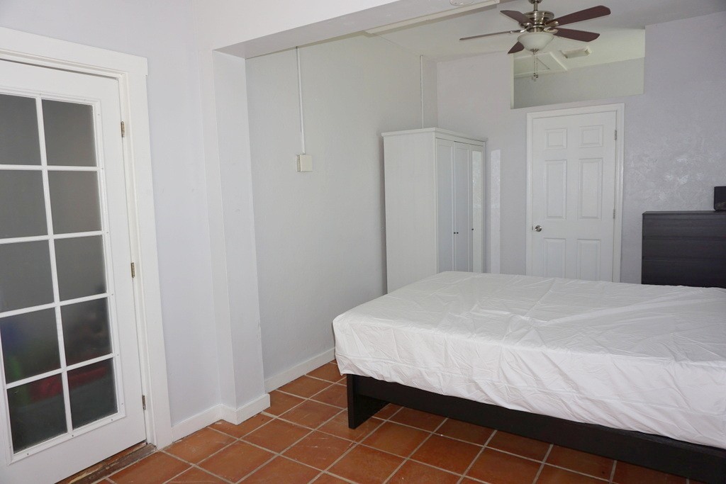 Private bedroom include full sized bed, side table, dresser, desk and chair, armiore, private bath and private entrance.
