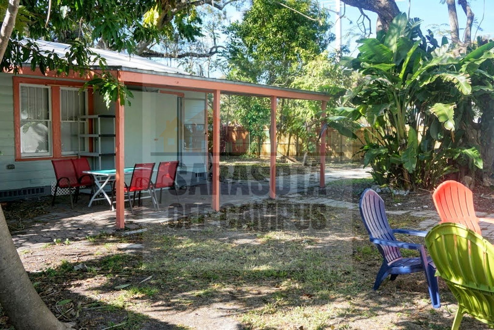 Enjoy the tropical fruit trees surrounding this Three Bedroom One Bath Apartment. A new vinyl fence encloses the backyard, fire pit, shared laundry as well as the mango, jackfruit and sweet apple trees. The full kitchen has marble countertops and stainless appliances while the bathroom has subway and modern tile. This apartment is only blocks from Ringling campus and the Walmart grocery store, CVS and Walgreens.
