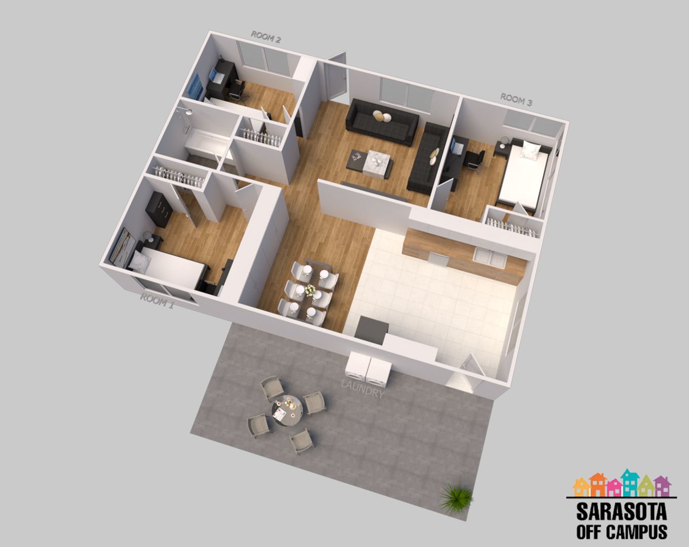 Sarasota Off Campus Student Housing offers Fully Furnished All Inclusive Student Housing with Individual Leases per Bedroom