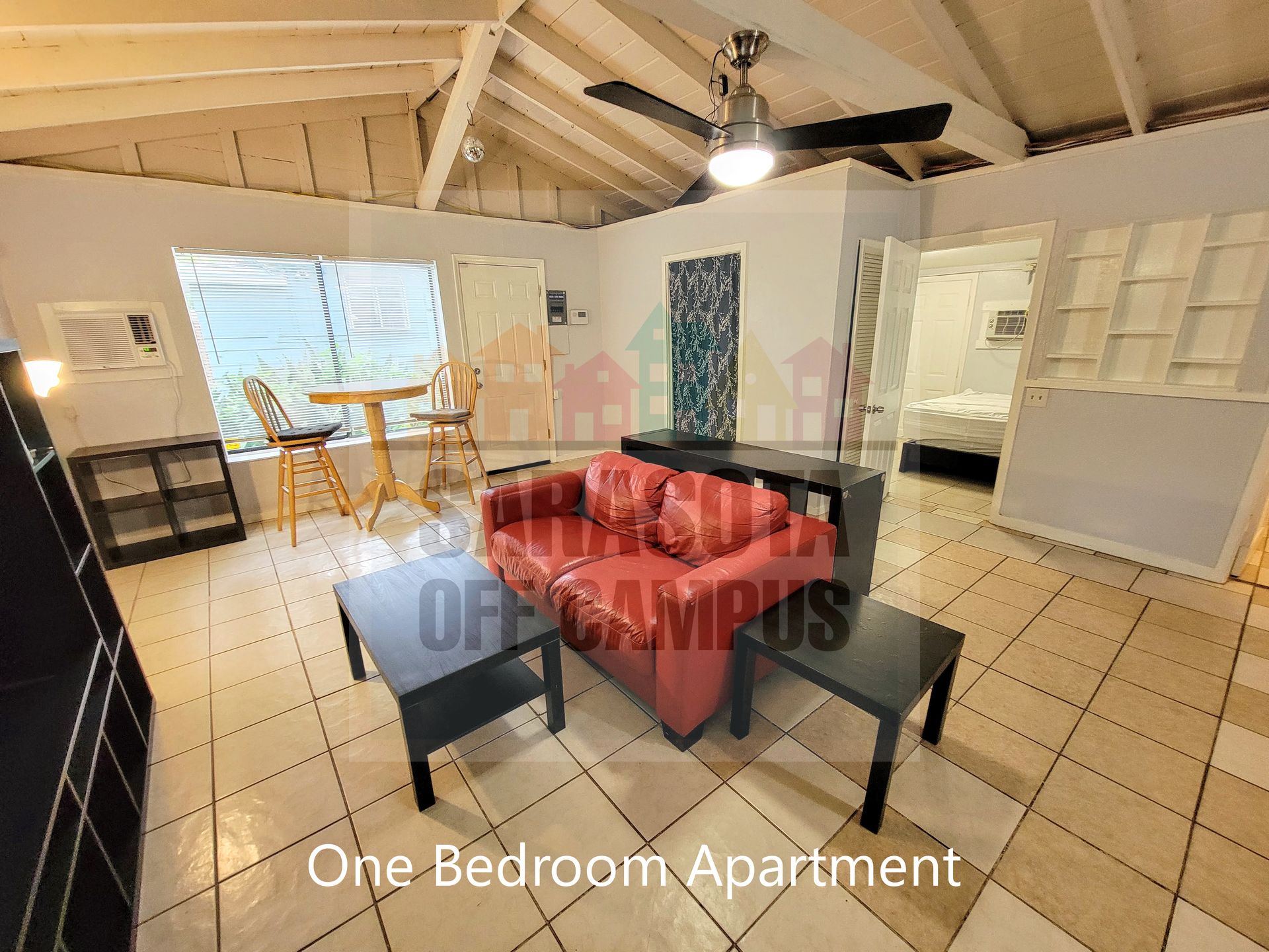 Fully Furnished with sofa, flat screen TV, dining table, bed, desk w/chair, closet or armoire, washer & dryer