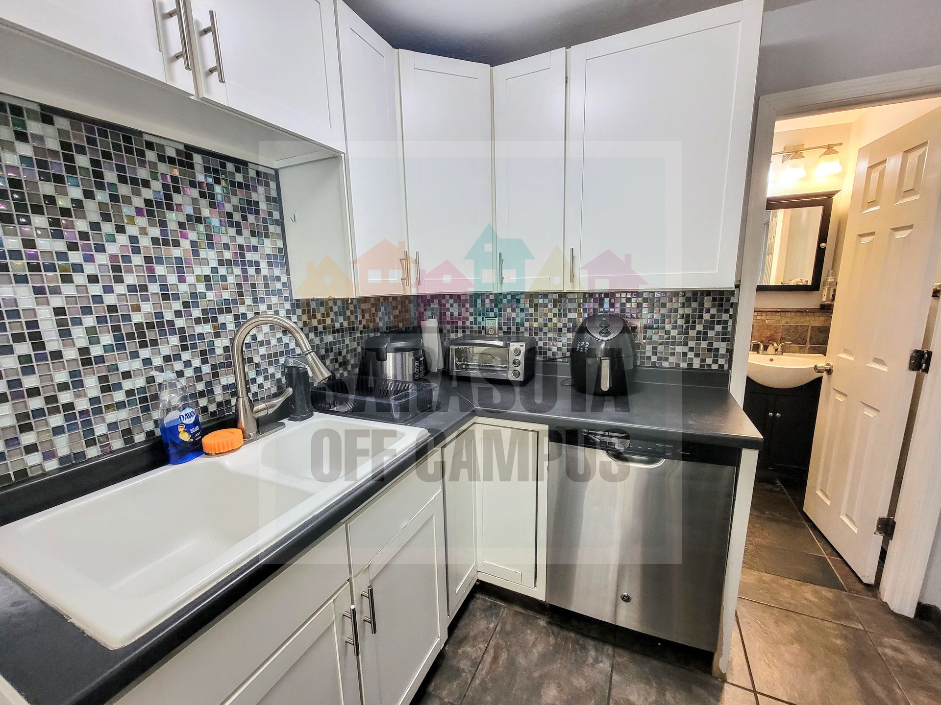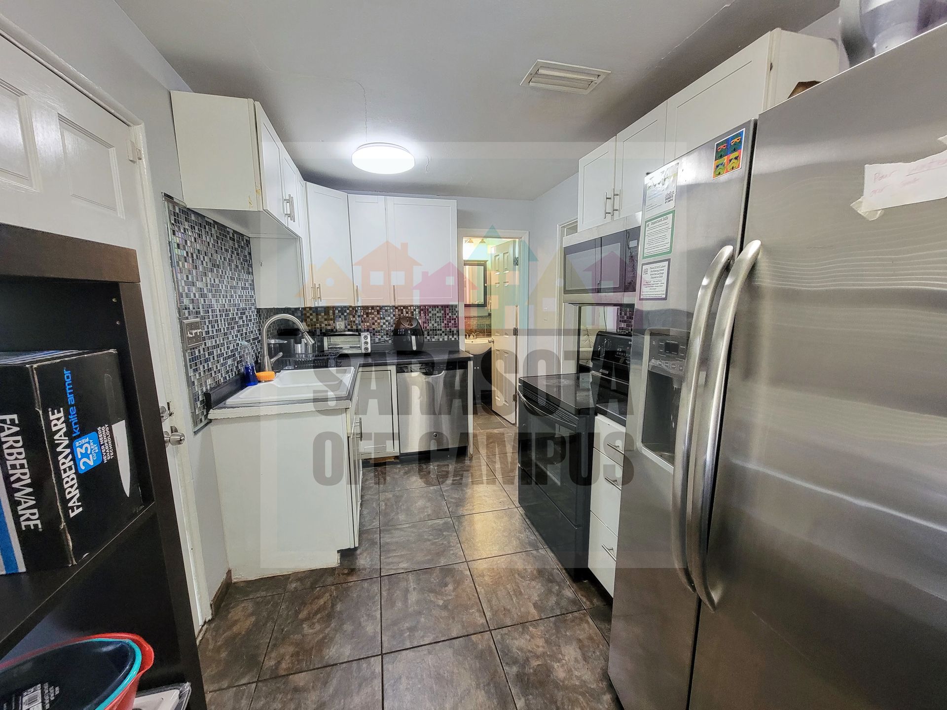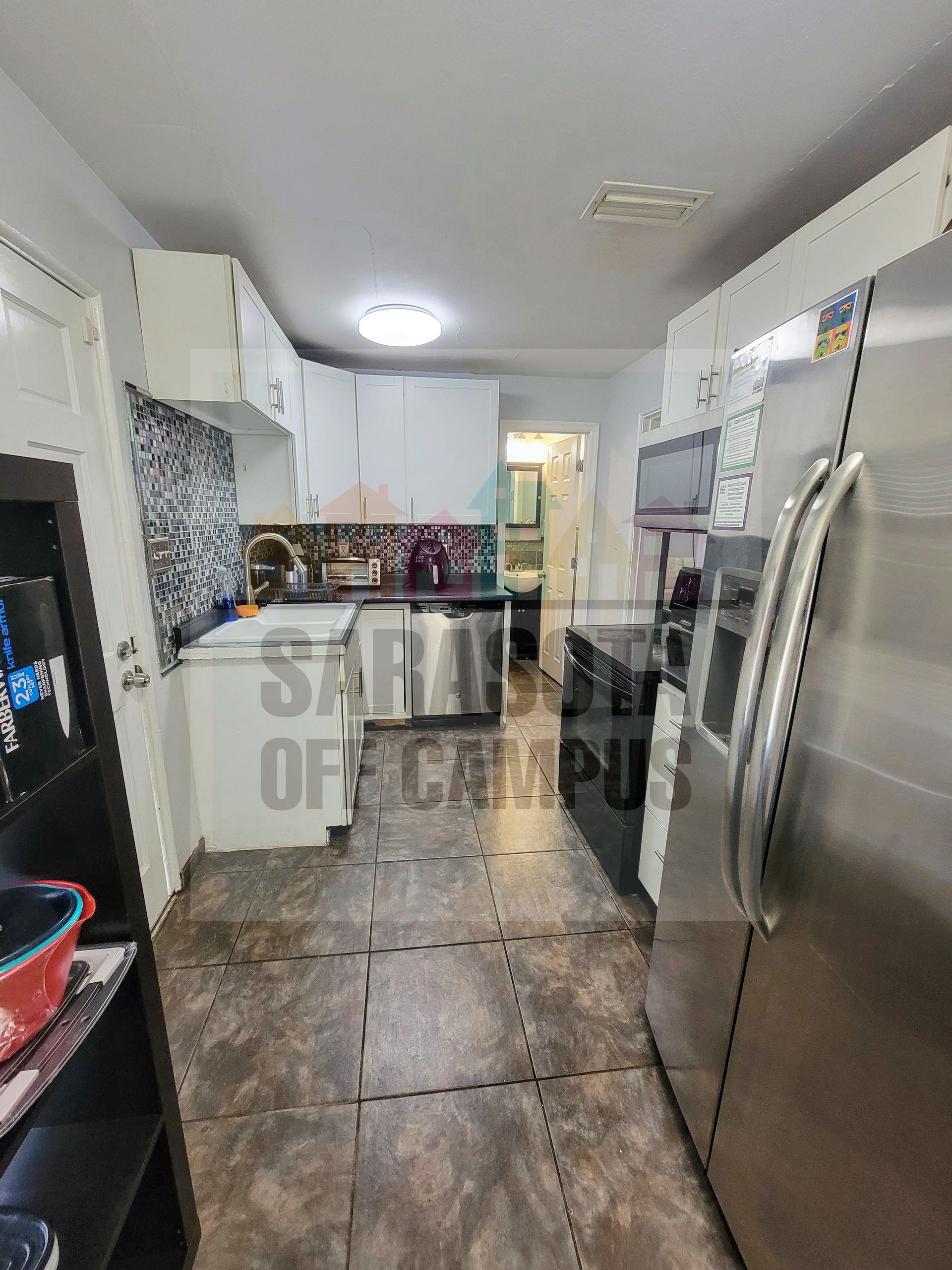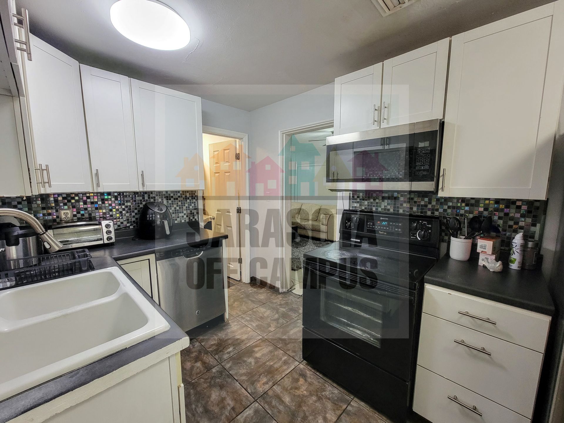 5 Bedroom 2 bath Home. Walkable and only blocks from Ringling College campus. Modern kitchen with mosaic glass tile backsplash and newly remodeled modern bathrooms with natural slate tile showers.